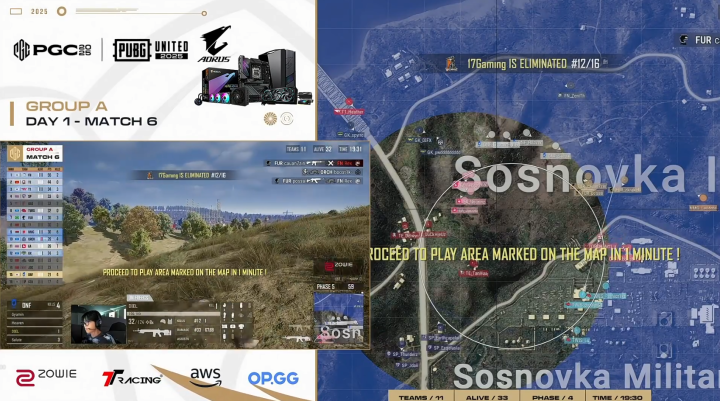 绝地求生PGC小组赛A组第一天的比赛即将结束,目前只有FN和TE两队的分数较高,大部分队伍都在20多到30多分这一阶段,其中包括我们的17,4AM和JDG三支PCL队伍。给还不了解晋级规则的朋友们简单说一下,本次PGC小组赛排名本组前五名的队伍是可以直接晋级决赛的,希望PCL队伍能把握住这个机会。