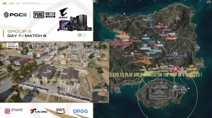 赛前以及有不少人分析过A组堪称死亡之组,第一天比赛下来大部分队伍的分数确实咬得很死,PCL队伍暂时没能挺进前八名,4AM虽然说拿到了自己在小组赛的首鸡,但他们和T1的Y城挑点冲突始终得不到解决,双方如果不能迅速roll点拿下对方的花是很难在海岛图上分的。