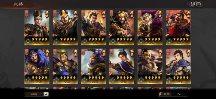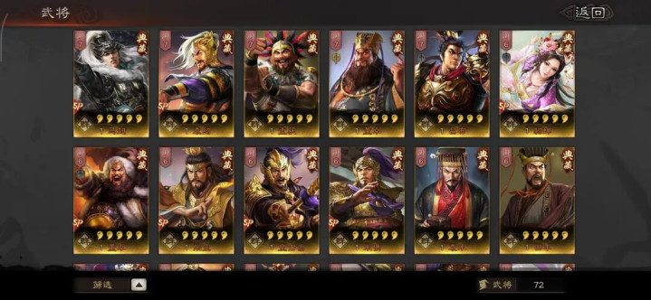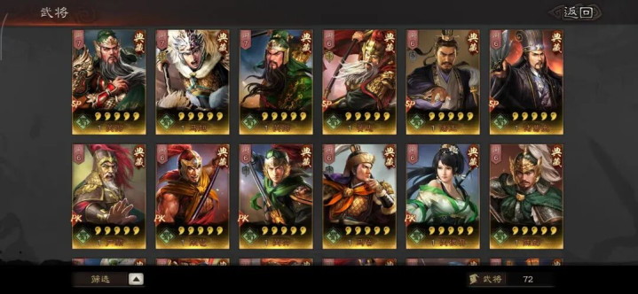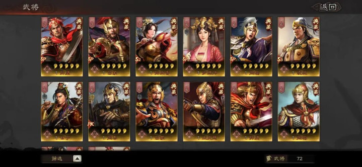 下面我们来看一下,都哪些武将出典藏,典藏的在上方,未有典藏的放下面。