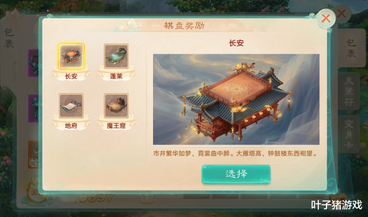 通过NPC珍珑进入棋局,完成引导任务系统会送给我们一个棋盘奖励,有长安、蓬莱、地府、魔王窟四个棋盘可选。每一局有8位玩家随机匹配,战斗失败扣除血量,最后角逐出第一名。