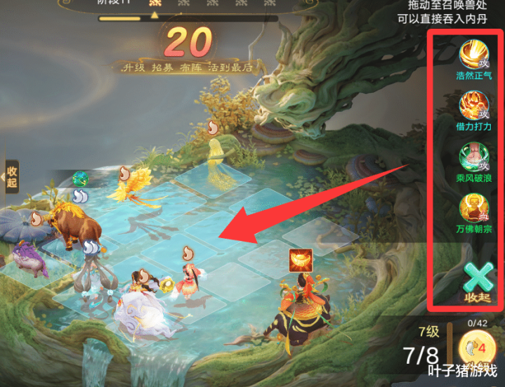 内丹可以直接拉到召唤兽身上,直接吞入内丹即可,召唤兽布阵也分为上阵区和支援区,用牙币升级等级,可以上阵更多召唤兽。