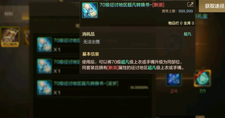 “超凡转换书”可以将普通超凡装备,升级为征讨地下城的超凡装备(带词条前缀)。