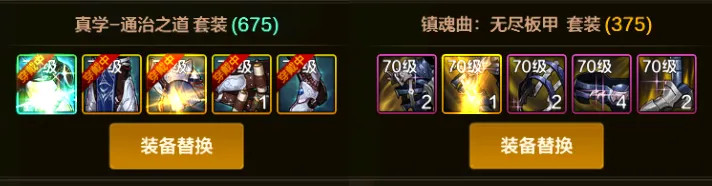 “手镯部位”只推荐罪恶套和精炼套,“防具部位”只推荐真学套和镇魂曲!