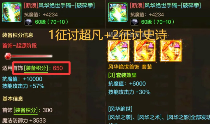 巅峰国际并不是说“超凡手镯”本身属性就一定好于“超凡上衣”,而是如果想凑齐首饰部位650积分“起源阶段”的话,那么就必须拥有「1征讨超凡+2征讨史诗」!