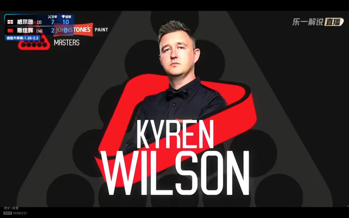 第一阶段,今晚九点,凯伦威尔逊VS希金斯,打满九局。