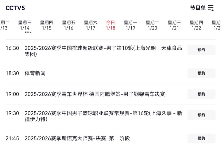 CCTV-5和央视频及虎牙直播平台直播计划安排详情如下图。